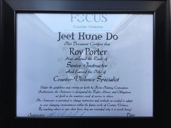 I’m a martial artist, Focus Counter-Violence specialist, and law enforcement defensive tactics instructor with more than 30 years of experience in various martial arts such as: wrestling, Aikido, Shorei-ryu, Tang-Soo-Do, Taekwondo, Mixed Martial Arts, and Jeet-Kune-Do. I teach and train according to the Jeet-Kune-Do (JKD) training method. JKD was made famous by martial arts pioneer and actor Bruce Lee. Jeet-Kune-Do translates to “The Way of the Intercepting Fist.” It is NOT and was never intended to be a martial arts system. It is simply a martial arts training method focused on adapting what is useful, rejecting what is useless, and adding what is specifically your own. JKD includes techniques and strategies from many arts and is only limited by the imagination of the practitioner. JKD training is continuously changing and evolving with every new practitioner through their expression of the martial arts. Many people refer to JKD as the original Mixed Martial Art. I'm a versatile instructor and coach that truly is a jack of all trades. I started wrestling as a kid which naturally evolved into traditional martial arts before the popularity of modern day Mixed Martial Arts competition. Little did I know at the time, my interest in mixing disciplines would soon become standard in Mixed Martial Arts competition. So, getting involved in modern style Mixed Martial Arts competition and coaching was a natural path for me. In the late 90's, I got introduced to Jeet-Kune-Do which really focused all my combat sports and martial arts experience into the realm of reality based self-defense. In my adult life, I began a career in law enforcement which started in the military, then corrections, and then onto police. About 20 years ago, I started training with a Jeet-Kune-Do intructor by the name of Michael Vanbeek, founder of Focus Counter-Violence. Training with Mike is truly a unique experience and privilege. I am currently a Senior Instructor/Law Enforcement Consultant for Focus Counter-Violence. This is more than self-defense training. It is an in-depth education into the culture of violence. When it comes to violence, there is no such thing as a "works for all" self-defense system. We, at Focus Counter Violence, develop and train counter violence strategies and techniques that specifically fulfill the clients' unique vulnerabilities and strengths.